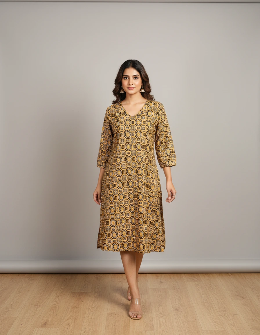 Ajrakh Pure Cotton kurta Mustard Yellow