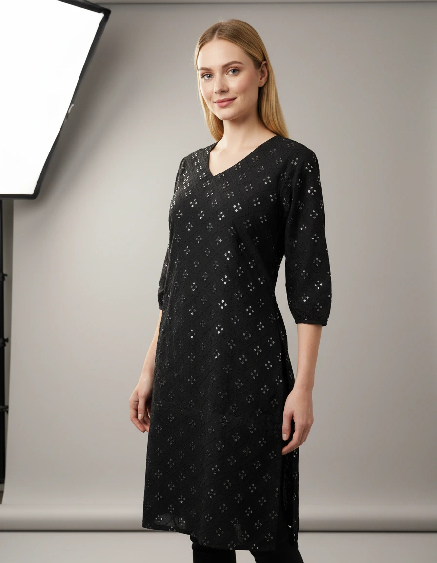 This  mirror work georgette kurta makes a great addition to your wardrobe  for casual wear  with this evergreen design .